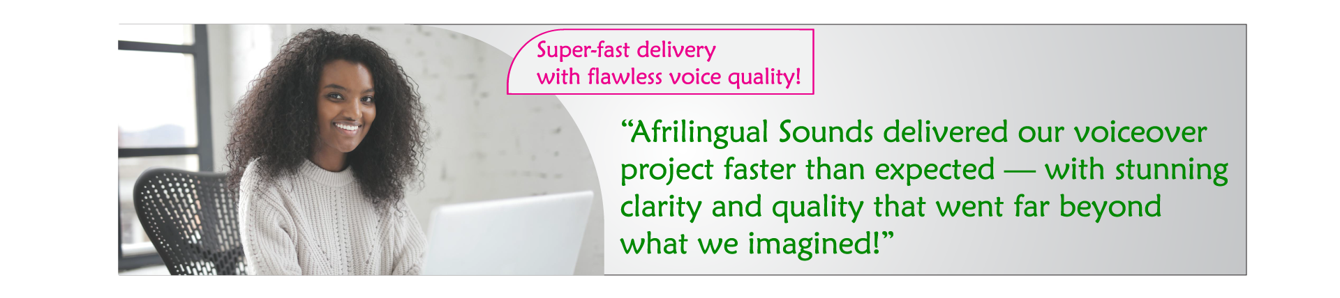 Experience East Africa’s rich voice with professional translation and voice-over services in all major East African languages. Afrilingual Sounds delivers native voices with authentic quality.